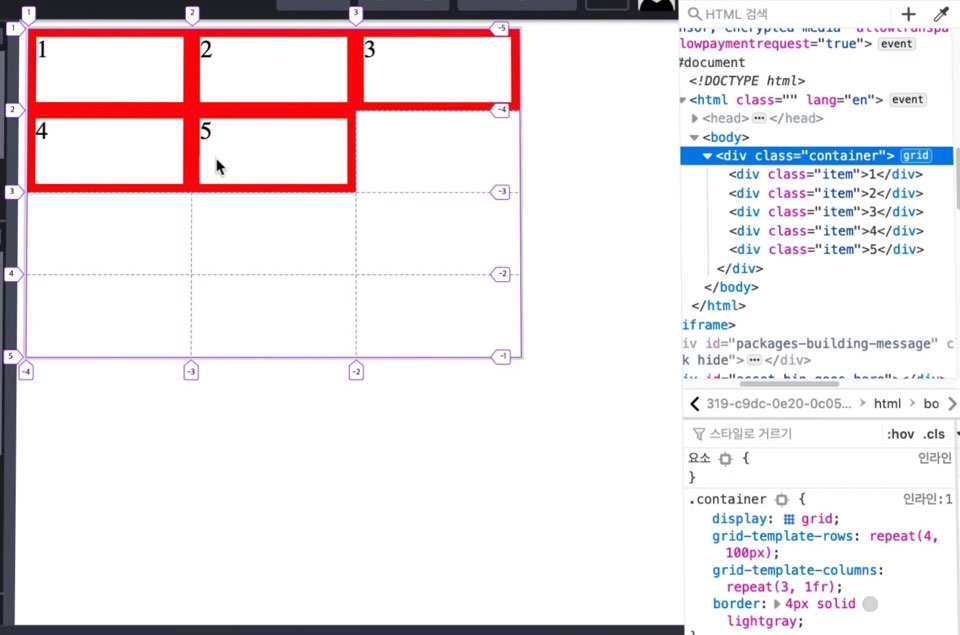 파이어폭스 브라우저를 사용해 테스트 추천. 개발자도구를 활용하면 그리드를 이해하기 좋음.