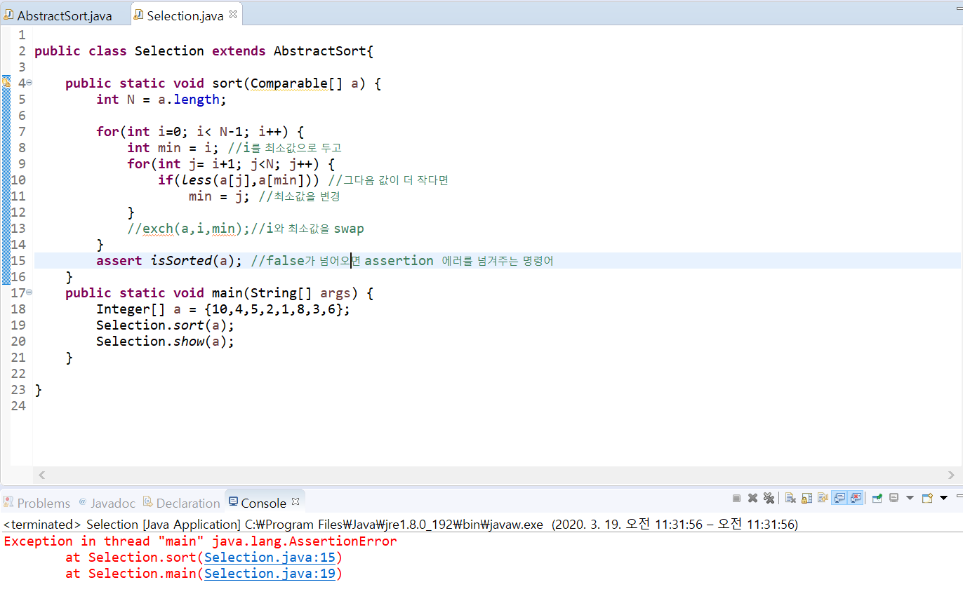우클릭 < Run Configurations < Arguments <VM arguments 에 -ea 입력
